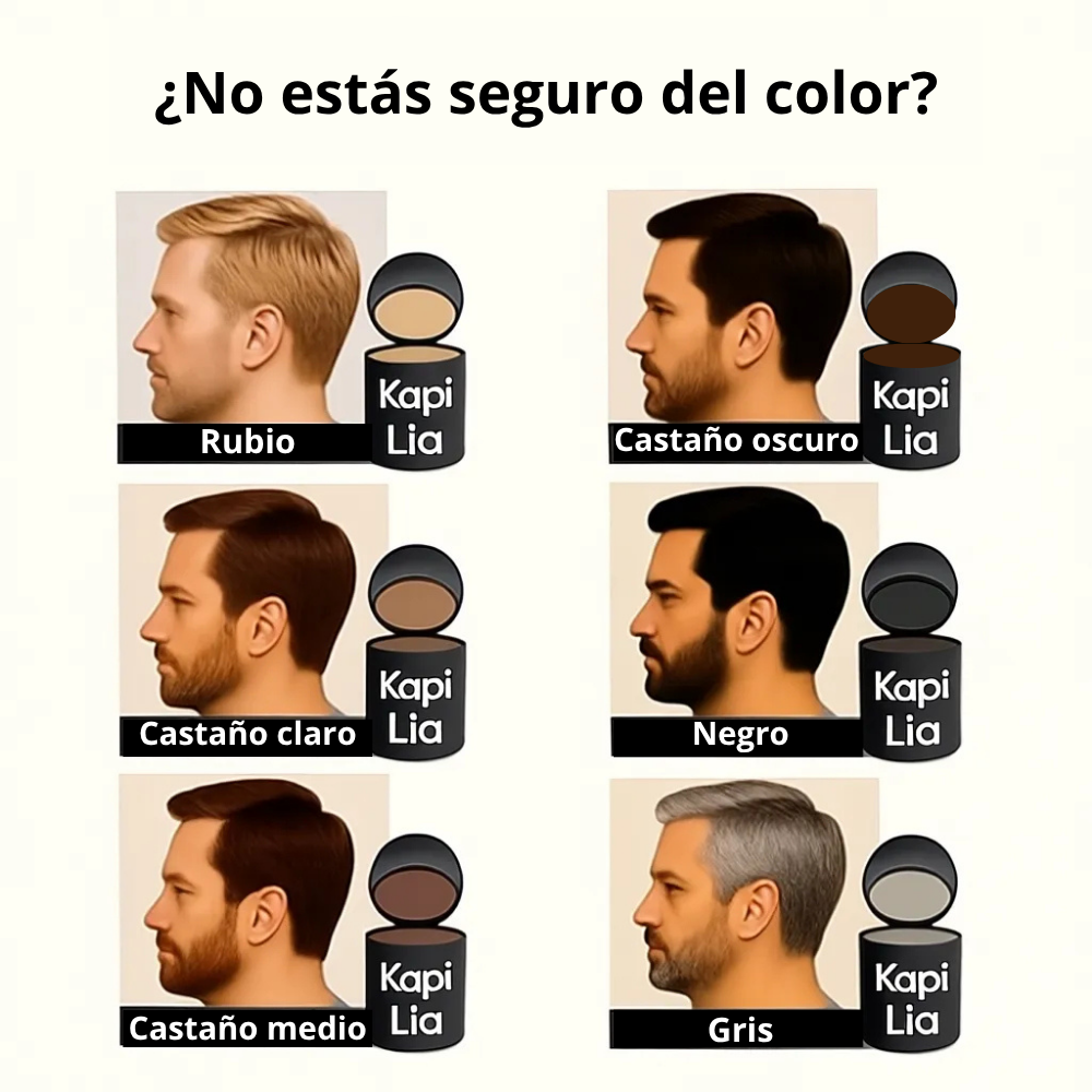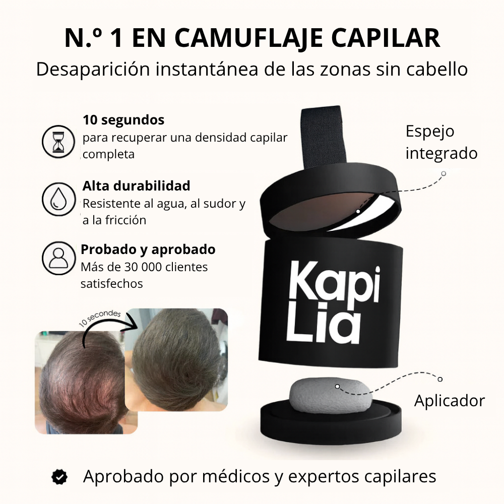 Kapilia disimula en segundos las zonas con poca densidad, tanto en la cabeza como en la barba, y además es resistente al agua y al roce.