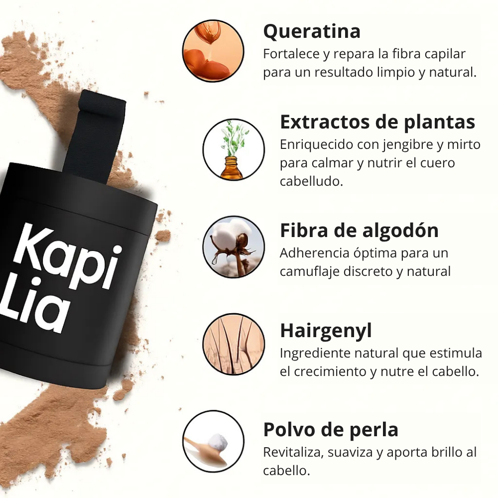Kapilia es un producto 100 % natural, sin sustancias químicas agresivas, perfecto para todo tipo de cabello, incluso el más sensible.